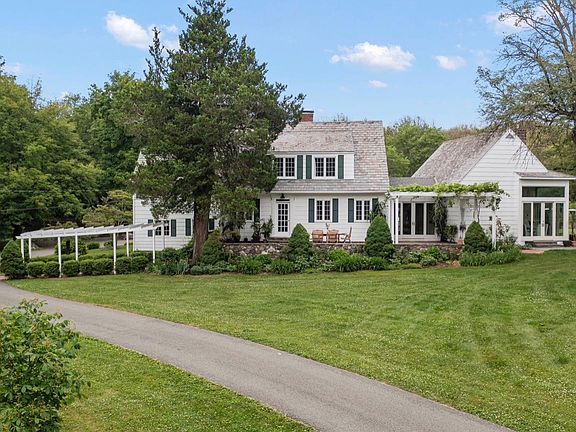 Discover your private oasis: This 1930s mini estate nestled on 14 acres offers a long paved and winding driveway leading to this captivating home with 4 bedrooms and 3 baths, surrounded by towering trees and tranquility. A picturesque stone patio welcomes you upon your approach with sweeping views of distant mountains and mature gardens on a rolling storybook landscape.Step into the expansive living room, radiating warmth and charm beside a crackling fireplace, perfect for unwinding. Further into the home, a massive contemporary kitchen-dining addition with soaring beamed ceilings awaits, ideal for gatherings and culinary endeavors. Floor to ceiling windows flood the rooms with light and overlook the mountains and expansive yard with mature plantings.Outside the large mature gardens and a mini orchard with close to 20 fruit trees surround the property. A gunite pool area, adorned with 20-year-old grape vines on custom arbors, invites relaxation and fun in the sun!. As the sun sets, enjoy stories and laughter around one of two fire pits under the starlit sky. Multiple trails meander throughout the 14 acres, perfect to long country walks or bike rides. A stroll to the historic 1800s post and beam barn reveals soaring ceilings and a newer solid concrete floor, offering endless possibilities from housing horses to hosting weddings. Additional features include a large backup generator, radiant bathroom floors, marble countertops, and an industrial cook stove.Located 10 minutes from the village of Millbrook (Millbrook School District and Property Taxes) just 5 minutes to TSP, Sky Acres cafe and private small engine airport within walking distance, and a short drive to Links golf course. 10 Mins to Dutchess Day School and Millbrook School, Orvis, and Millbrook Country Club.