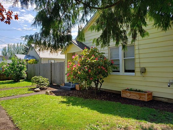 Starter home! Spacious 1108 sf, 2 large bedrooms and 1 bath. Country kitchen with pantry, eating bar and dining area. Huge living room with a cozy pellet stove, laminate flooring throughout most of the home and inside laundry/mud room with storage. Fenced back yard, detached storage/garage.
