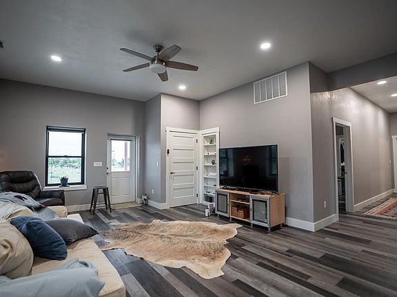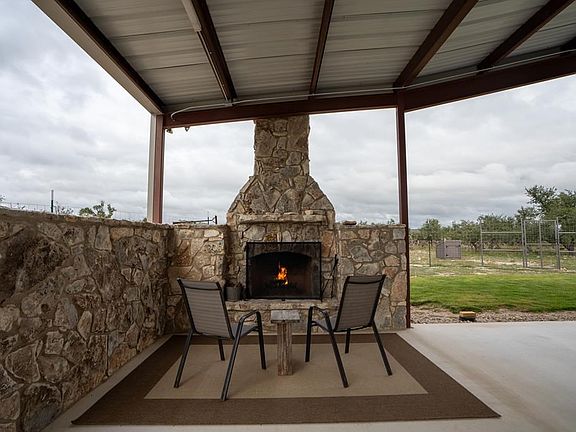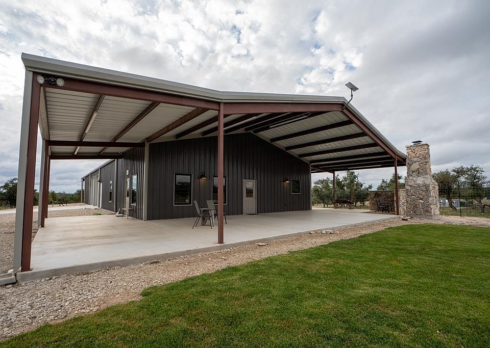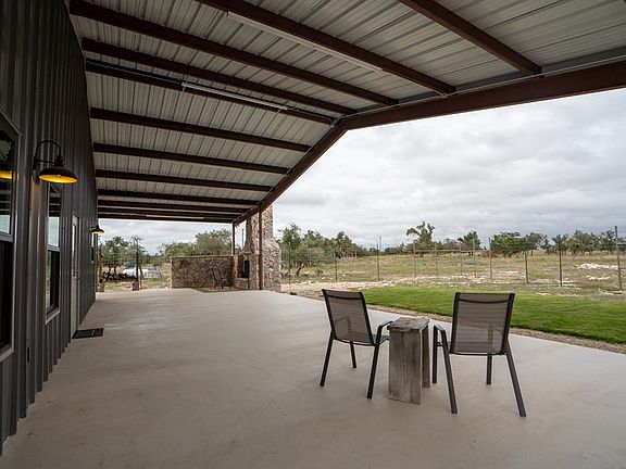 Barndominium Bliss! This one story 1600 sqft home built in 2022 features an open floorplan with 10ft ceilings, 36 inch doorways, walk in showers and closets. Large shop area provides ample parking for cars and RV. Beautiful porch with a custom TX sized fireplace. The shop bathroom is plumbed for a shower and could add another bedroom. Generac generator, water softener and solar panels are paid in full . Low electric bills due to solar. Low maintenance, Low taxes, make for Beautiful Hill Country Living.