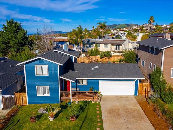 Are you looking for the best deal in Pismo? You just found it -- grab the phone and call your agent! Near Chumash Park tucked away in a cul-de-sac location, this move-in ready home offers 2-story living with maximum privacy. As you enter through the front door, bear right to enter the popular u-shaped designed kitchen featuring a newer LG double oven range and Bosch dishwasher, both in a beautiful stainless finish. The kitchen is light with crisp blue cabinets offering plenty of storage and plenty of prep space. Adjacent to the kitchen is the cozy dining area that opens to the deck, patio and rear yard areas -- perfect for the BBQ aficionado. There are two comfortably sized guest bedrooms and bath downstairs. Make your way upstairs to the light and bright 2nd level, enjoy the relaxing living area boasting a Boho-inspired fireplace and catch a peek of the ocean from any of the many windows. Nearby is the private ensuite master. The closet is fitted with organizers offering plenty of room for clothes and more. The rustic-inspired bath boasts a dramatic soaking tub for relaxing at leisure. The large rear yard is planted with many fruit trees and a garden soon ready for harvest. Hurry, this won't last long!