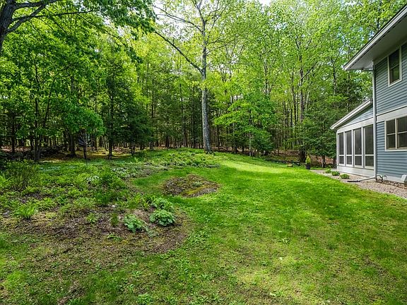 Welcoming, comfortable, architect designed 5 bed, 4.5 bath home w/ large screen porch & local stonework nestled in Williamsburg. Perfect family or vacation home just 18 min to Northampton Ctr & 35 min to Berkshire East. Custom kitchen & bathroom cabinetry, spacious cook’s kitchen, library area w/ seating, custom built-in entertainment space. Home office w/ built-in desks & shelves. Primary bedroom w/ en-suite bath featuring heated floors, soaking tub, and tiled shower w/ river rock floor. 4 spacious bedrooms & 2 baths upstairs. Ground level includes large family room w/ cork floors, full bath & oversized 2-car garage. Convenient outdoor shed & Generac generator. Storage galore, efficient propane furnace w/ 3 remote controlled zones for heat & A/C, plus tankless water heater. A gardener's delight w/ flowering shrubs & perennials to attract bees, butterflies, & hummingbirds; herb garden, wild orchids & berry bushes, curated paths in the woods surrounding the house, plus a stone fire pit.