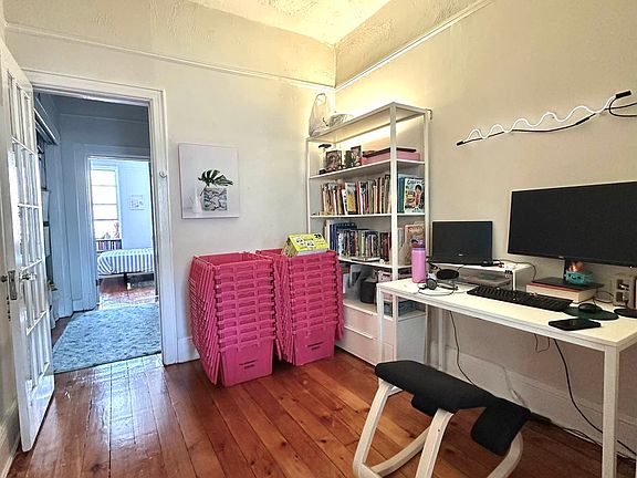 Discover the epitome of charm and character in this spacious 1BR apartment with an office nestled in the heart of Greenpoint. Featuring original, freshly refinished floors and decorative wall moldings, walk in closet, this space exudes timeless elegance. The recently renovated kitchen boasts stone countertops and a convenient dishwasher plus washer, while the bathroom offers a sleek shower. Stay comfortable year-round with central AC and HEAT. With a short walk to the G train and the scenic McCarren Park, this is a prime location for the perfect blend of historic details and modern convenience in the heart of Greenpoint. *tenant pays utilities *