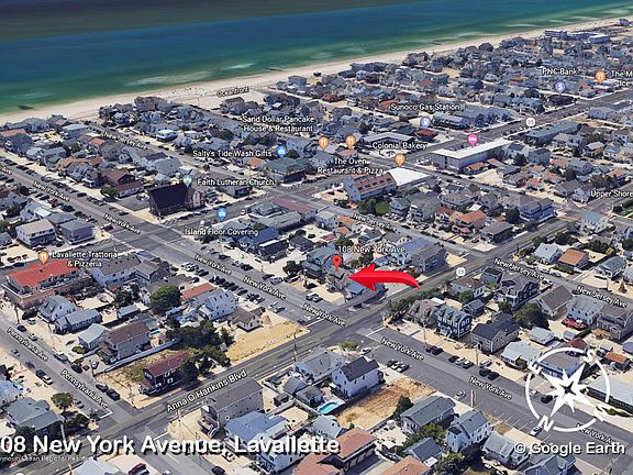 Lavallette - This spacious and elevated home on the middle block is just 1.5 blocks from the boardwalk. Features include 5 bedrooms, 2 full baths, large living room, sunny back porch, central air, good size bedrooms, detached garage, outside shower, open front porch, sizable rear yard and plenty of off-street parking. Great price for all you get!