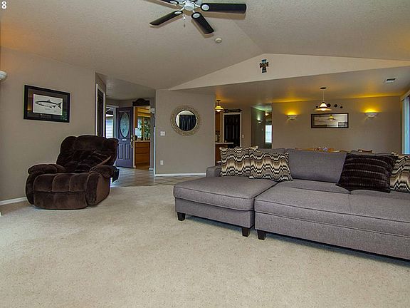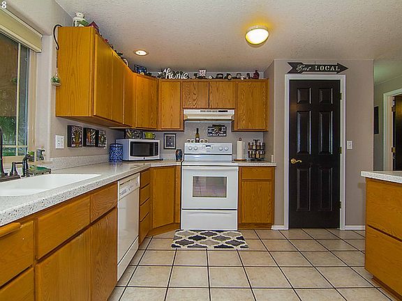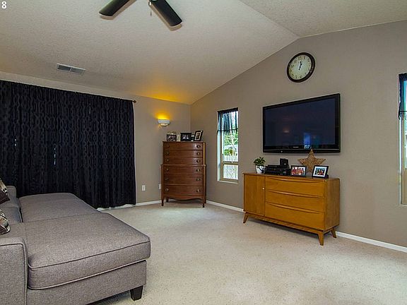 This beautiful one level home is wonderfully designed, the floor plan is very inviting, with a large-light and bright living space, with sharp, modern room colors. Solid surface counters in the kitchen, with eat bar, and open feel. This home is truly a step up from many of the homes in this neighborhood and era. 2 car garage and full lot length extra parking for whatever toys you may have. Very low traffic street.