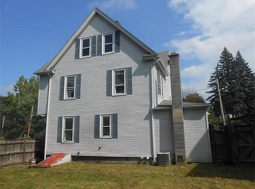 Price Reduced! Grey Vinyl sided Colonial with 8 Rooms, 4 Bedrooms, and 1 Full Bath featuring a Fenced Rear Yard and Shed. Seller is in process of having basement painted with Drylock.