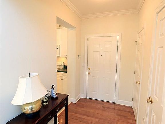 First floor, end unit (middle building) at CHANDLER PLACE CONDOMINIUMS. Wood floors throughout-no carpet. Short walk to building front door and elevator. Bright & sunny home. Floor plan often used as 1BR w/den or study. 2nd BR has built-in bookshelves. Assigned parking (1 space) & storage room in the garage. Community pool. Inviting covered porch. Residents enjoy short sidewalk stroll to The Lassiter shopping & restaurants. Pet friendly community.