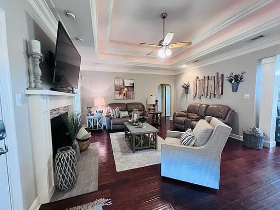 Pride of ownership here! This 4 BR, 2.5 bath Legacy Pointe home perched on a 0.4/ac hilltop lot has been gently occupied & is packed w/custom features, recent upgrades, light paint colors & soaring ceilings some to 11 & 12 feet. Recently upgraded kitchen offers thick new granite counters, seating peninsula, custom cabinets, center island, double ovens & opens to both DR/breakfast area. Engineered hardwood, brick & tile flooring. Massive owners suite can hold oversized furniture & new barn door reveals lovely getaway bath! Living area opens to privacy fenced yard w/ cov. patio, firepit, BBQ area. 2 dbl garages. Detached garage is perfect for storage/workshop. New roof 2021.