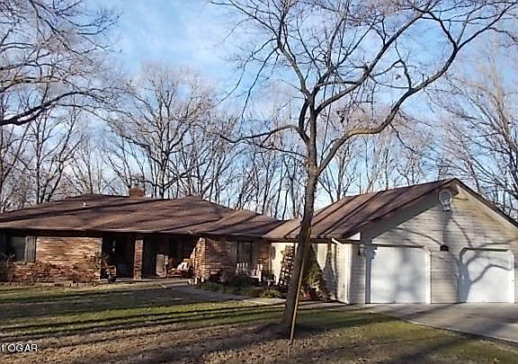 Nestled in the trees best describes this location! This full brick home includes 2 parcels of land on hill. Wood burning fireplace with insert keeps you nice and cozy during the winter and the large patio provides space to enjoy when the weather is warm. Large family room, living room and dining room make this home the perfect gathering place! Complete with 36 x 60 metal shop building with 2 overhead doors to put your man cave in! In ground storm shelter and storage building included. Oak cabinets throughout, lots of sunlight, walk in closets, and Anderson windows. Water filter system ! Call for your private showing today!