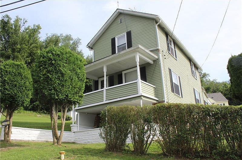 108 Oak Street! This two story home is situated on a large double lot. This home offers two large bedrooms w/ original hardwood floors, a large living room w/ open bar/island area to the kitchen. Two closed in porch areas off the back of home & a covered balcony off the front living room. Two off street covered parking areas. The lower level has a finished room with vinyl floors...this room houses a sink and counter space along with gas oven hookup (easily a second kitchen). Washer and dryer are included along with the refrigerator in the main floor kitchen. The back portion of the lower level has painted walls and floors and is super clean. You'll love the size of the yard! Check it out today! All this and much more in the Bentworth Schools. Home Warranty included!