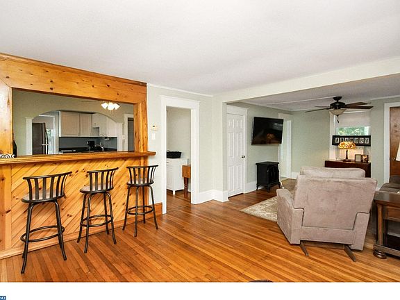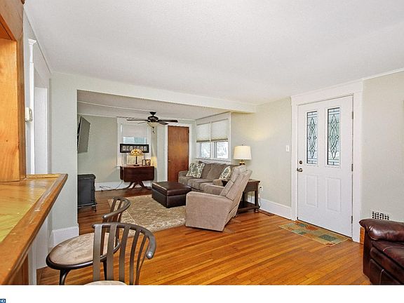 What a GREAT LOCATION!! Walking distance to the high-speed line station. Great Curb appeal. Lovely open front porch. 4 bedrooms, 2 full bath Colonial. The total interior of the home has been freshly painted and the beautiful oak floors have recently been refinished in living room and dining room, New kitchen, First floor bedroom leading to rear patio that makes for great summer entertaining with spacious back yard.(First floor bedroom could also be used as a study/den.