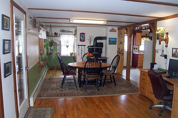 This home has 5 acres of very nice level pasture/fields that would be ideal for animals,gardens or outdoor activities.This home has many updated features that include a newer roof. The homes is located just south of the town of Brandon,but it feels private,with views of the mountains and sunsets from the deck.There's a 2 story garage (24x36)that is finished on the inside and being used as a woodshop.