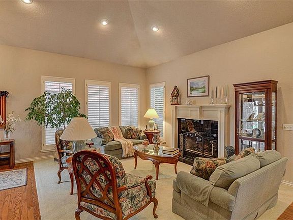 Put this lovely home on your 'MUST SHOW' list. This is a beautifully maintained and updated 3/2 1/2 split bedroom floor plan in Brookhaven on Main. This nugget shows nicely with 2 large living areas with vaulted ceiling, both with beautiful gas log fireplaces. The more casual family room is open to the kitchen and has a warm, cozy brick fireplace. There are also 2 dining areas, with a spacious and light formal dining room and a more casual breakfast nook, overlooking outdoor patio with brick pavers and fountain, perfect for morning coffee or evening beverage. Plantation shutters and double pane windows located throughout! The master suite boasts a spacious master bath with jetted tub, double vanities and large walk in closet. This home is nicely sized at 2333 sq ft and located just west of Sooner Mall, convenient to most of Norman and close to I 35. There is also a lifetime warranty on roof that will transfer to the buyers. Nice curb appeal; beautiful and welcoming inside!