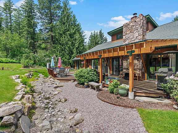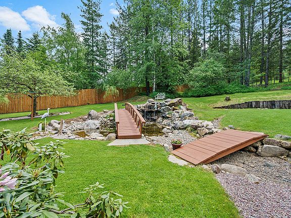 A rare Gem in its perfect setting! Quality craftsman home on 1.54 acres just 5 minutes from downtown Sandpoint. A perfect home for entertaining and raising a family. Peek a boo water views. Professionally landscaped w/large deck overlooking private backyard oasis, fully fenced with waterfall, bridges, pond and seasonal creek. Mature fruit trees, cedar grove, perennial garden & more...This 3,944sqft home boasts open floorplan, lots of natural light, 6 bedrooms (4 w/ensuite bath) office space, & potential for separate downstairs ADU. Quality finishes throughout; custom hardwood cabinets, hardwood floor, slate floor, tile floors, and granite countertops. PLUS 2,000 sqft shop w/heated wood shop, garden shop, room for RV, Boat, ATV's etc.