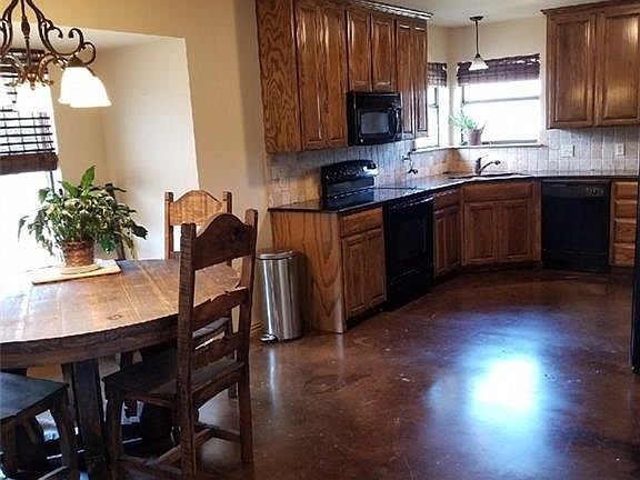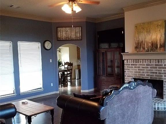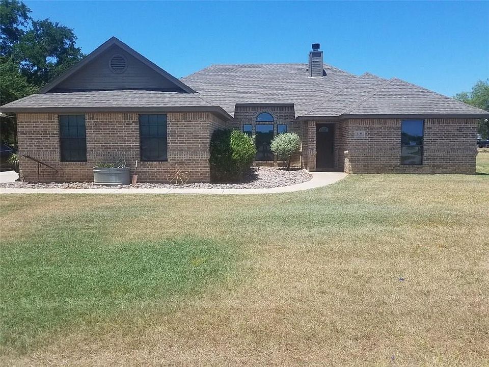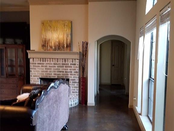 Gorgeous stained concrete floors other than carpet in bedrooms in this beautiful all brick home in award-winning Brock ISD. 10' ceiling in family room with brick WBFP, big screen TV niche and wall of windows overlooking backyard. Separate bedrooms, gorgeous huge shower in MBath with double walkin closets and dual sinks. Granite countertops with tumbled backsplash, roomy pantry, upgraded cabinets and roomy dining area. Ready for move in before school starts! Yard care included!