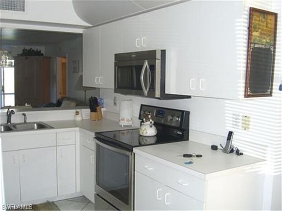 This first floor unit in Pebble Shores is conveniently located close to all North Naples has to offer including shopping, dining and beaches. This unit is being sold turnkey making it great as an investment or the ideal winter getaway! Unit has (with the exception of the refrigerator) new stainless steel appliances in the kitchen, great lake views and electric storm shutters on the lanai. Located just steps from the community pool. This is a must see!