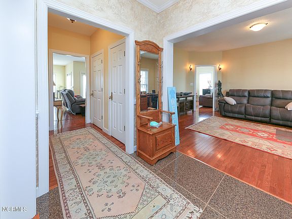Looking for a waterfront home with amazing sunrise views? Welcome to this stunning Victorian home nestled on 1.41 acres to include 3 bedrooms, 3 bathrooms and a flex space above the garage. Inside the kitchen with its solid surface countertops boast a beautiful island for gathering. The open concept allows the kitchen, dining room and living room to flow together perfectly, while the natural lighting bathes the interior in sunshine throughout the day. Located in ''The Shores at Land's End,'' a tranquil waterfront residential community with abundant waterways, a rich place in history and plenty of outdoor space to enjoy. You could kayak in the canal, swim or lounge at the pool, bike ride or if you have a golf cart, you are sure to love riding around in this peaceful place. So many amenities, elegant details, and upgrades to end the day with sunset views from the pier, 3rd floor turret or covered front porches. If you enjoy gardening, the fenced in area in the back yard can be a great place. Schedule your appointment today to look and see what makes this house the perfect place to call home.