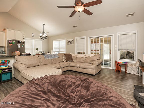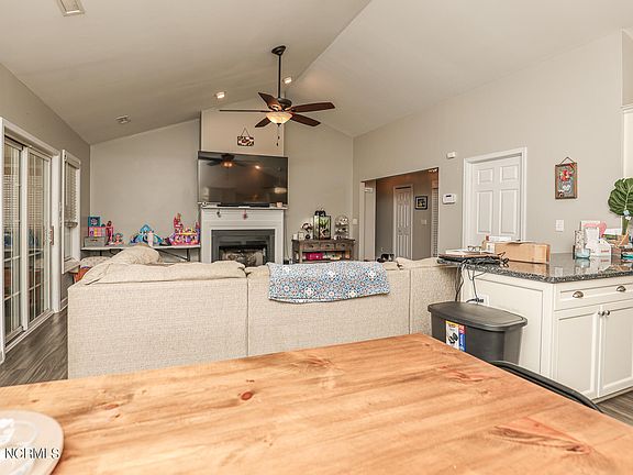 Very desirable property located in Holly Ridge, NC not within city limits. This home has many features, IT is situatied on 1 ACRE of land with no HOA. Very open floor plan with vaulted ceilings. Kitchen features Stainless steel appliances, granite counter tops, tile backsplash and LVP flooring. Living room features LVP flooring, gas fireplace and leads to the sun room out back. The homes features 3 bedrooms, 2 full bathrooms, bonus room above the garage and laundry room. Out back you will find a fenced in yard, above ground swimming pool with deck, 2 storage sheds, and an out door shower.