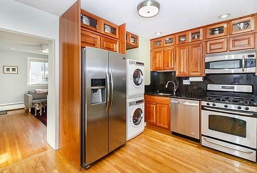 Pondside perfection! Two bedroom, one bathroom duplex condominium located just steps from Jamaica Pond. Spacious, sunny living/dining area with hardwood floors. Renovated kitchen with granite countertops, stainless steel appliances, wood cabinets and a newer gas range. Each bedroom is generously-sized and has large closets. In-unit washer and dryer, gas heat and one off-street parking space included. Pet friendly association! Whole Foods is only 2 blocks away along with many other restaurants and cafes on Hyde Square and Centre Street. Convenient access to Green and Orange Line T, #39 Bus, Longwood Medical, Brookline Village, and the Emerald Necklace. Ideal for first-time buyers and investors.