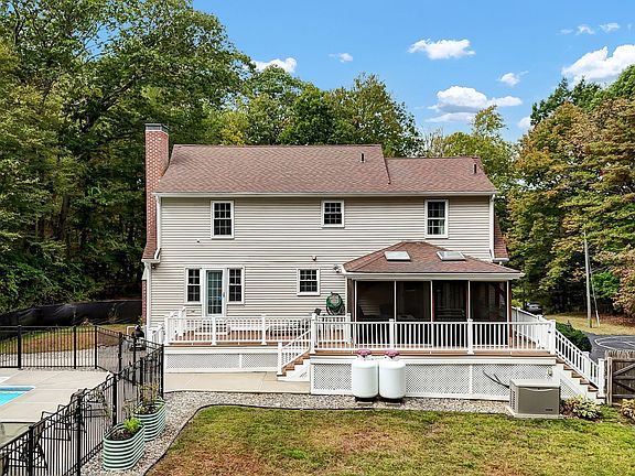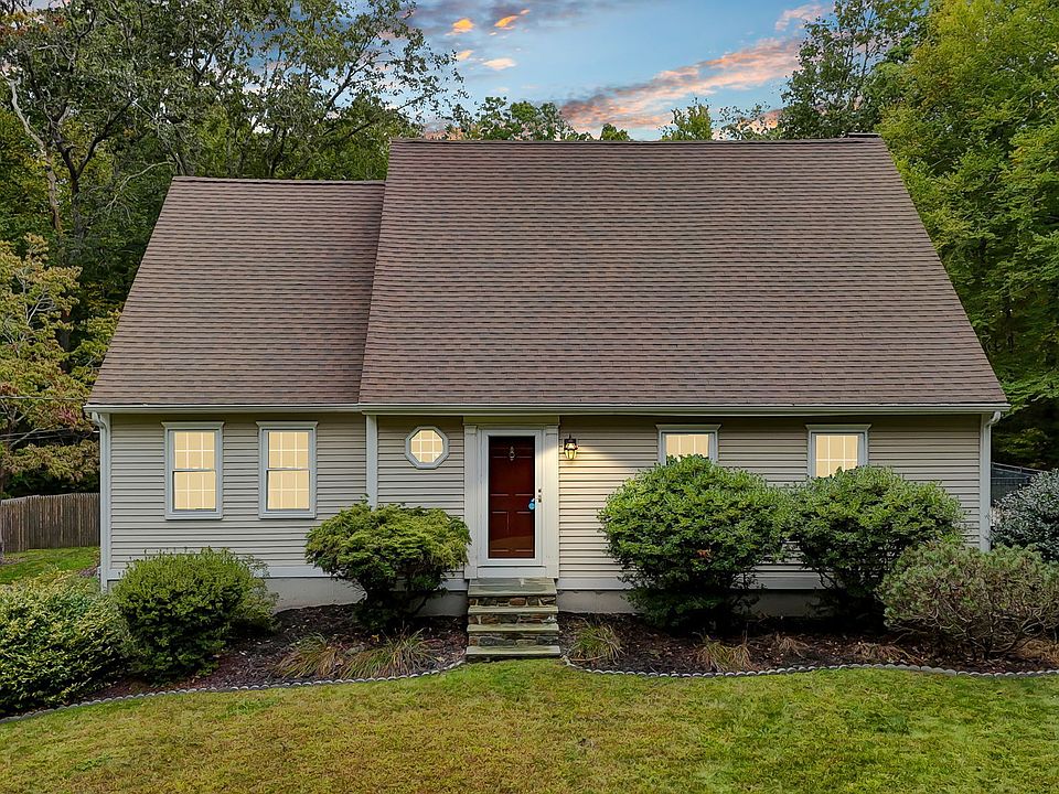 Turn key and updated throughout with a bright modern feel, tucked away presents this updated Cape Cod-style home offering 2,200 sq. ft. of living space on 1.9 private acres. Featuring 3 bedrooms and 2 full baths, this property combines modern updates with comfortable charm secluded on a 1.9 acre lot. The kitchen includes a center island, granite countertops, and stainless steel appliances. Two spacious living rooms one with a fireplace and built-in shelving and a slider opens to the backyard, while a dedicated dining room provides the perfect space for family meals or company. Outdoor living shines with a screened in porch featuring skylights, and ceiling fans, great for enjoying the serene landscape. An additional back deck off the second living room to the in-ground pool with fenced patio area make this space great for entertaining. A small outbuilding offers an ideal for storage or conversion to a chicken coop or rabbit hutch. Upgrades include Budarest heating system for efficacy and quality heat. A partially finished basement for extra rec space or office. In ground pool, basketball court, fire pit this home is ready for new ownership! Set on a wooded lot for peace and privacy, yet just minutes from Lisbon Landing, local parks, and I-395, this home offers both seclusion and accessibility. Easy access to Norwich and Griswold area.