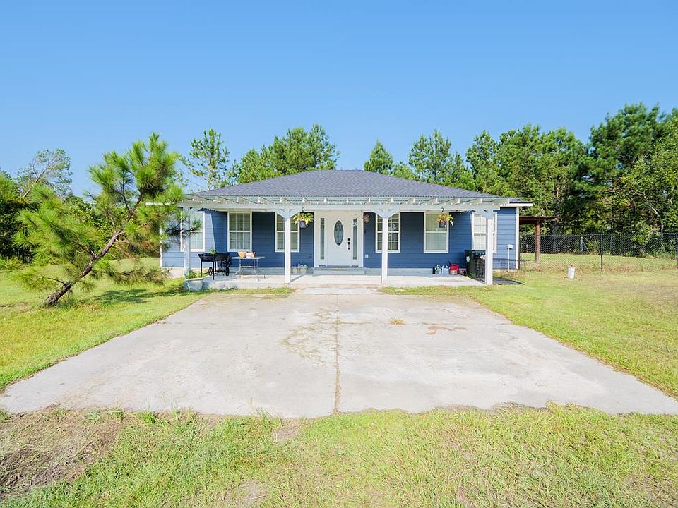 Welcome home to this little piece of paradise! This beautifully remodeled bungalow style home sits on almost 4 acres at the end of the cul-de-sac. NO CARPET, NEW ROOF, FRESHLY PAINTED, and ready to move in! Come enjoy your morning coffee on the front porch and watch deer and other wildlife roam freely down by your private, well stocked pond! Step into the large great room with lots of windows which allows for an abundance of natural light. The large kitchen boasts a gorgeous, stacked stone bar, stainless appliances, plenty of counter space, beautiful maple colored cabinets, and a wine rack & pantry! The primary suite is large with walk in closet and large bathroom. 2 guest bedrooms share a hall bath. Large laundry room complete with washer & dryer on pedestals that will stay with the home! Fenced in back yard allows your pets or little ones to go out and not run loose on the almost 4 acres. Owner is leaving the large storage barn down by the pond.