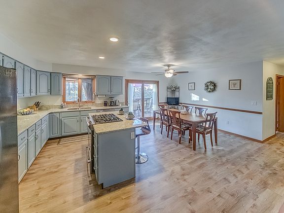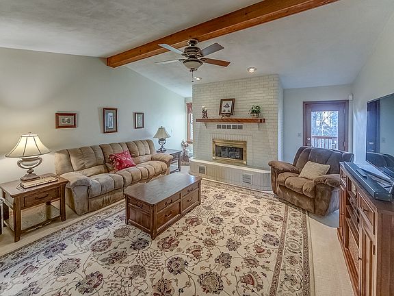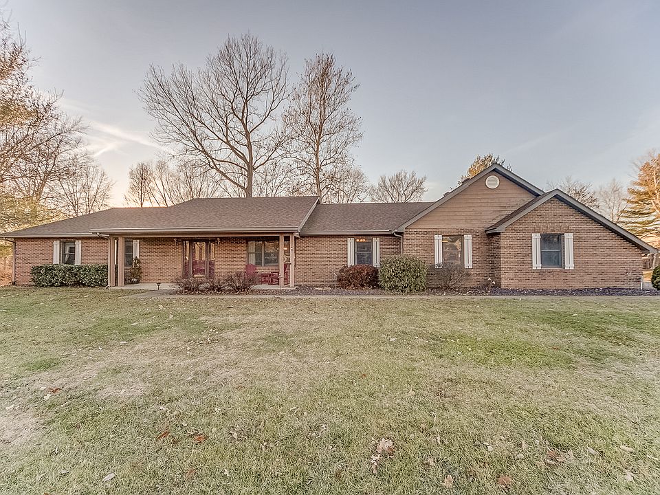 Sprawling 4 bed, 4 bath ranch style home with plenty of room to entertain inside and out. Gather around the grand brick fireplace in the living room accented with wood beam. The incredible dining room offers a sunny picture window with ample room for family and friends. Prepare meals in this gourmet kitchen featuring updated appliances, granite countertops and a large center island. A walk in pantry with desk area and under cabinet lighting add the finishing touches. Recharge in the incredible master suite offering excellent closet space, double sinks, seperate shower and jetted tub. Three additional bedrooms offer comfort and privacy. The finished walk-out lower level highlights an inviting family room complete with brick fireplace plus two bonus room that can easily be a playroom, media room, office or exercise room. Step outside onto the large deck overlooking the expansive backyard full of shade trees. The three car garage has a built-in workbench and separate furnace!