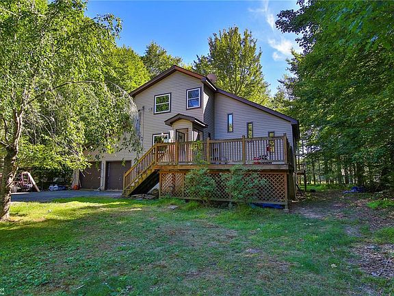Price Improvement! It's got all the essentials, from an open layout to vaulted ceilings and ample natural lighting, plus it's close to everything you could want in a home—the Kalahari Water Park, Camelback Ski Resort, shopping, and more. The first floor features an open layout with vaulted ceilings and ample natural lighting through multiple skylights. The cozy modern kitchen flows into the dining area and living room. The living room is finished with stunning hardwood floors. There are two additional bedrooms on the second floor along with a full bathroom, while there is also a sunroom where you can watch the wildlife roam. The laundry room is located on the lower level with additional storage space or finish it into additional living space. This home has low dues at Tunkhannock Trails which allows ATVs on roads! Taxes only $2,879.99/year and $300/year HOA! Oversized 2 car garage with plenty of extra parking in front of the house on this oversized 1 acre lot.