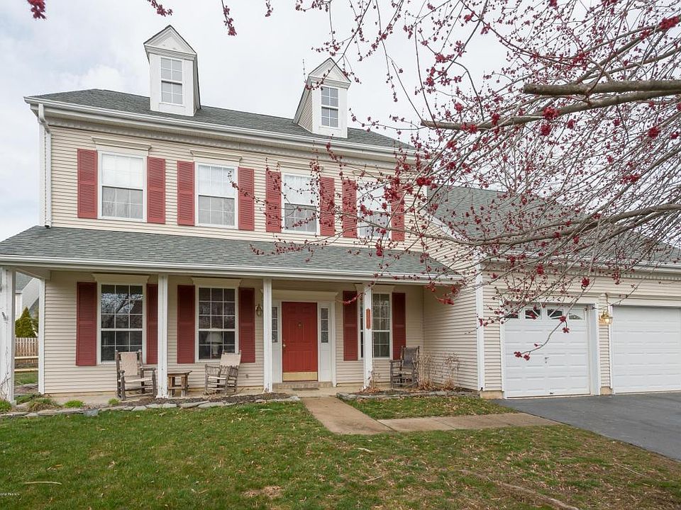 Classic colonial with covered porch where you can enjoy your morning coffee. This center hall foyer in desirable Country Meadow Estates has 3 bedrooms and 2 1/2 bath. Fireplace surrounded by custom built floor to ceiling bookcases and mantel set the tone for this informal family room. Master Suite featuring 2 WIC's & adjoining bath. 2 car garage, fully fenced in yard. New Roof spring 2016 and hot water heater April 2017. Seller providing HMS Home Warranty for buyer.