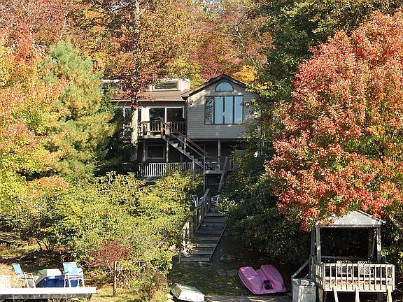 LAKEFRONT Split-level home on East Emerald Lake. For Sale By Owner. Perfect family, vacation, or investment home in a central location! Home is NOT part of a community, NO Dues and Low taxes! This renovated spacious place has 5 bedrooms, 2 full baths, 2 family rooms, sauna, fully equipped kitchen with a breakfast bar and table, gorgeous floor to ceiling wood burning stone fireplace. Open layout throughout family and dining room with cathedral ceilings. Comes fully furnished, dock, boats, fire pit, BBQ grill and so much more! You will enjoy gorgeous views from almost every room, deck, patio and waterfront gazebo by the dock.