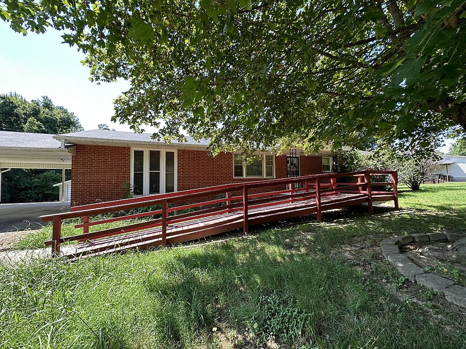 charming brick & situated on approx a 1-acre lot~ property boasts a tiled bathroom, which is both durable & visually appealing~One of the focal points of the house is a rock fireplace, providing a cozy & inviting atmosphere during colder seasons~Modern comfort is ensured by the presence of central heating & air conditioning, which helps maintain a comfortable temperature throughout the year.The convenience of a concrete driveway is available, offering a smooth & sturdy surface for parking vehicles & enhancing the overall curb appeal of the property~there is a double carport providing ample covered parking space~also includes a detached, extra-large, 2-car garage,providing plenty of room for vehicles~offering combination of practicality,comfort, & aesthetics~3rd bed was made into laundry