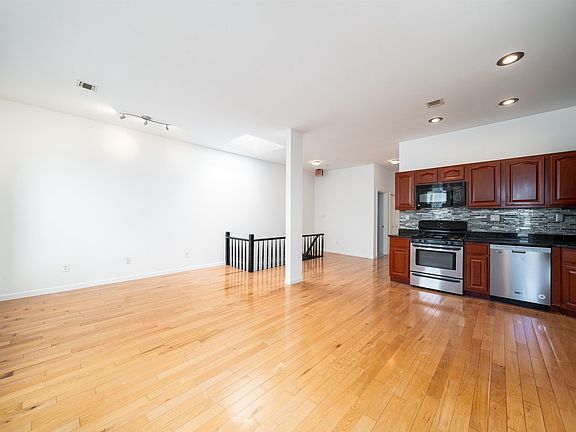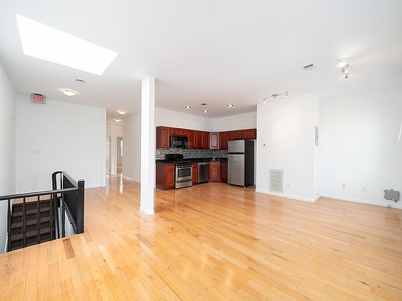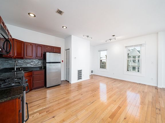 This 1,152 sf 3 bedroom, 1 bathroom top floor condominium features incredible south-facing natural light, high ceilings, large windows, central air, private laundry & storage room and shared backyard. The first level private entryway leads upstairs to the impressively spacious open concept living area with skylight. The kitchen features plentiful cabinetry and stainless-steel appliances overlooking the dedicated dining area. The living space offers multiple options for work from home setups. The 3 bedrooms are in excellent proportions. A spacious hallway closet is located next to the full bathroom with bathtub. The private laundry room is located in the basement featuring a top load washer, dryer and storage. Enjoy the tranquil shared backyard garden with beautiful flowers that come back every year and an outdoor lounge area great for entertaining. Conveniently located nearby both Pershing Field and Riverview Parks, the recently renovated Reservoir, grocery stores, restaurants and shops along both Central and Palisade Avenues, easy access to bus service to PATH & NYC and lightrail.