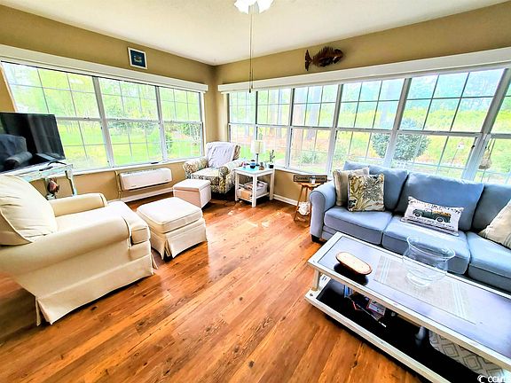 55+ Community. 3 Bedroom 2 Bathroom Well Maintained Landscaped House. Quiet and Serene Neighborhood. Very Low HOA. 0.18 Acres. Oversized 2 Car Garage with Second Refrigerator, and Pull-Down Stairs with Floored Attic Space. Cathedral Ceiling in Great Room with Wood Burning Fireplace. Open Concept Floorplan. Gorgeous Open Kitchen Overlooks Great Room, Dining Room, and Large Carolina Room. Carolina Room also has its own Heat/Air Split System. PLUS there is a Remote Controlled Double Blind System. One is for Shade and One is for Privacy. Kitchen Proudly Boast of Plenty of Counter Space and Island. Breakfast Bar, and Sitting Nook Located in the Kitchen. One Room Flows into the Next Makes for Easy Entertaining. Lots of Light. Large Concrete Patio Outback Comes with Bird Watching and Beverage Sipping. Lawn Irrigation. Washer & Dryer Included. Woodlake Village Community Includes Outdoor Pool, Tennis Courts, Shuffleboard, Pickleball Court, and Clubhouse with Great Library. 2.8 miles to the Ocean. Nearby are Golf Courses, Marina, Marshwalk, Restaurants, Shopping, and Hospital.