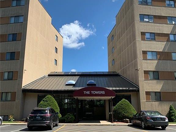 THIS UNIT IS ONE OF THE BEST LOCATIONS IN THIS COMPLEX...TOP FLOOR-END UNIT WITH SOLARIUM BRINGING IN GREAT SUNLIGHT & VIEWS ARE SO AMAZING. THE KITCHEN HAS BEEN UPDATED WITH DETAILED MOLDING UP TO THE CEILING. THIS UNIT HAS CEILING MOLDING THROUGHOUT & LARGE DETAILED BASEBOARD MOLDING. A FRESH COAT OF PAINT WILL MAKE THIS MOLDING STAND OUT & WOOD LIKE LAMINATE FLOORING IN MAIN LIVING AREA & IN THE SECOND BEDROOM. MASTER BEDROOM HAS CARPETING & LOTS OF CLOSETS SPACE. THIS UNIT IS IN NEED OF A FEW MORE ITEMS IN BATHROOMS & ALL CLOSETS DOORS TO BE INSTALLED & SLIDERS TO SOLARIUM WILL MAKE THIS HOME AWESOME. THERE IS A MONTHLY FAIR SHARE BILL WHICH INCLUDES HEAT, AIR CONDITIONING, WATER & SEWER WHICH IS BILLED TO EACH UNIT MONTHLY. THIS UNIT IS CHARGED APPROXIMATELY $94 PER MONTH. ALL YOU PAY IS A VERY SMALL ELECTRIC BILL WHICH WALLINGFORD HAS THEIR OWN ELECTRIC COMPANY WHICH IS THE LEAST EXPENSIVE IN THE STATE. THIS COMPLEX IS LOCATED MINUTES AWAY TO CHARMING DOWNTOWN WALLINGFORD WITH ALL THE FINEST RESTAURANTS, CAFE, SHOPS, LIBRARY, PUBLIC PARKS WITH TENNIS COURTS, PUBLIC TRANSPORTATION & YMCA WHICH HAS AN UP-TO-DATE GYM & AN INDOOR SWIMMING POOL. WHAT AN AWESOME LOCATION WHICH ALSO OVERLOOKS WALLINGFORD COUNTRY CLUB & GOLF COURSE. 3 MINUTE RIDE TO THE TRAIN STATION TO GET YOU TO ALL THE MAJOR CITIES-NEW YORK, BOSTON & MANY OTHER MAJOR CITIES. 12 MINS TO NEW HAVEN AND 25 MINS TO HARTFORD. SECURED & VERY QUIET COMPLEX. GREAT FOR PEOPLE WHO TRAVEL...DON'T MISS THIS ONE