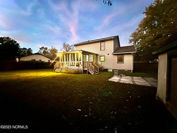 Spacious, newly updated 3 bedroom, 2.5 bathroom home conveniently located in the heart of Havelock just 3 minutes from MCAS Cherry Point and best of all, NO HOA! This home is situated on a cul-de-sac and offers ample space inside & out. This floorplan offers a formal livingroom , dining room and a spacious eat-in kitchen with plenty of cabinet space, and a seperate den Enjoy the evening sunset on the covered porch, relax in the sunroom, or get cozy during the cold season in front of the wood buring fireplace, the options are endless! This home also has a fenced in yard, single car garage PLUS RV Parking with electrical hook-up. Renovated rooms include: all bathrooms, kitchen, new LVP flooring (NO CARPETS) & paint throughout along with several updated lighting fixtures. Don't miss your chance to view this lovely home.