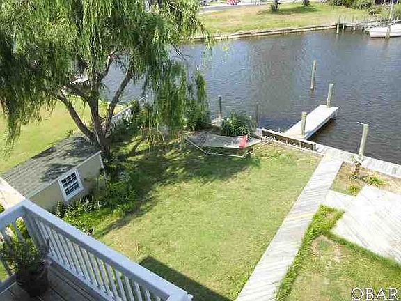 Sunrise, sunset! You'll be singing the tune all day after you have been here! Enjoy the exquisite sunrise view down the canal from the back decks in the morning and the breathtaking sunsets from the sun deck on the top deck in the evening. Every room has a water view! The beauty of every season is captured from the inside and the outside. The pier and the dock with built in seating provide a perfect place for fishing and crabbing while the pilings allow for 2 boat slips plus an area for a visiting boat. Power has been run to the dockside deck for a hot tub. The yard is fenced so that Fido can enjoy the outdoors as well. The ground floor has a bonus room complete with a full bath and stackable washer and dryer and beaucoup storage! The second floor offers a laundry room with a stackable washer and dryer (which can accomodate to a side by side if desired), 2 guest rooms, a full bath and a master bedroom complete with a jetted tub, a separate shower, double sinks, built in dressing table and walk-in closet. The hallway has room for an office area with phone and internet jacks. The top floor has an open floor plan with a living and dining room overlooking the water, a cook's kitchen with custom tiled counters & backsplash, breakfast counter, powder room and a man cave with built in cabinets and a wine cooler. All floors have decks/patio and outside entrances Enjoy this comfortable home and all of the wonderful Colington amenities!