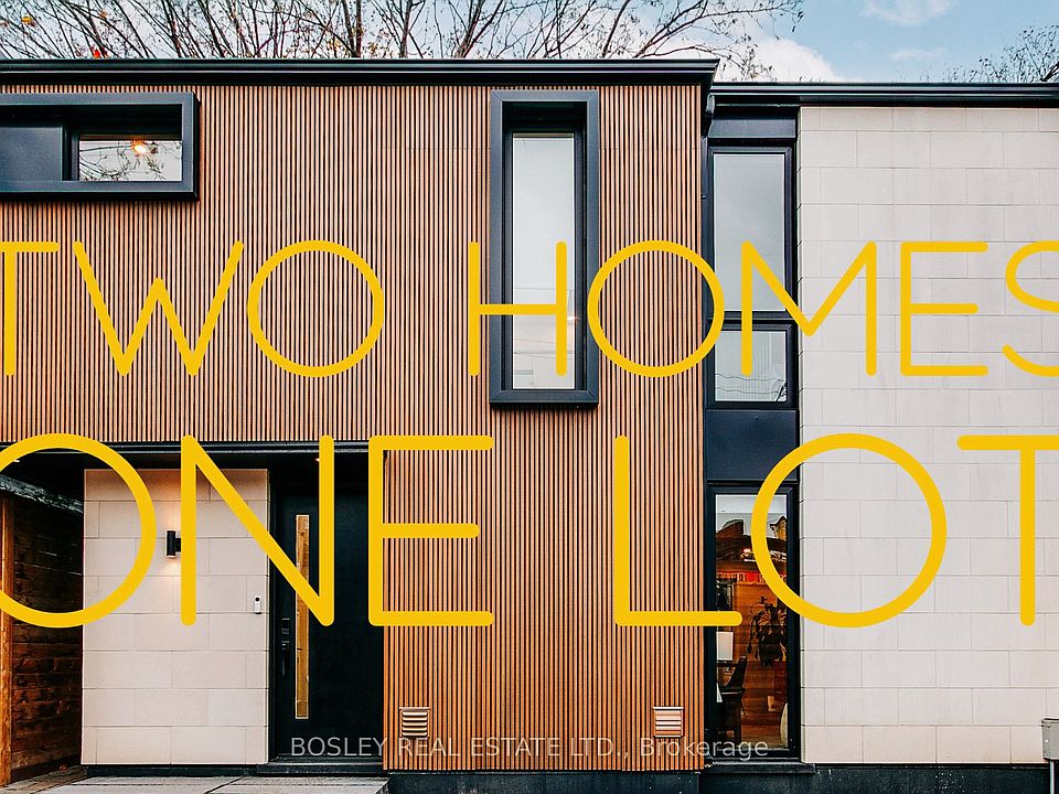 Two homes. One address. Endless possibility. Together, the main house and its 2022 laneway companion form a rare urban compound that's as flexible as it is beautiful - a perfect fit for co-buyers, multi-generational families, or anyone looking to invest with intention. Live in one and rent the other, or co-own with friends to create two fully private, self-contained homes connected only by subtle, thoughtful design. The main residence offers timeless East End character with modern function, while the laneway home brings calm, contemporary living tucked quietly at the rear - each distinct, yet naturally connected. Whether you're pooling resources, blending families, or seeking income without compromise, this property is about togetherness on your own terms: two homes, one lot, and countless ways to build a life - and a future - together. Consider: The main house fronts Moberly with three levels of warm, character-filled space-high ceilings, hardwood floors, a gas fireplace, and an eat-in kitchen with stainless appliances, gas range, powder room, and walkout to a landscaped garden. Upstairs, three bedrooms include a bay-window primary with rooftop deck and a rear sunroom retreat, while the finished lower level adds a rec room, den, bedroom, and laundry, with plans to create a separate lower suite. Beyond the garden, the 2022 laneway home adds three bedrooms, radiant-heated floors, open-concept living, smart-home features, and a private, tree-canopied yard. A double-width remote gate offers parking for two and direct access to shared gardens-moments from East Lynn Park, Woodbine subway, and the best of Danforth Mosaic.