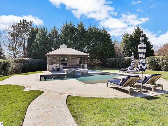 **LUXURIOUS COBBLESTONE EXECUTIVE HOME** with New Resort Style 30x16 Pool/Spa/Cabana, built by Signature Pools and Outdoor living. Sitting on nearly a 3/4 of an ACRE of perfectly maintained grounds in the most private of settings** This 4BR/3.5BA Custom Masterpiece is tucked away in highly sought after "Cobblestone", located in Five Forks, and known as one of Greenville's finest communities. The "Curb Appeal" of this home is distinct with its Brick & Stone exterior, custom double doors and Widows Walk Balcony. From the moment you enter you are greeted by the Large 2 Story Foyer, gleaming hardwoods, Beautiful Staircase, and arched entryways you immediately feel the warmth and charm of this homes rustic styling & functional floorplan. Immediately greeted to the right by a bright Dining Area and the left a Gorgeous Living Room/Office/Study all giving way to the Entertaining portion of the home. The Loads of Natural Light enters the Great Room with Custom bookcases & cozy fireplace. For the Chef in the family, the Gourmet kitchen is magnificent with a Bright Breakfast area, Gas Stove, Granite Countertops, Custom cabinetry with loads of storage, Island work station and a "Peek A Boo" Eat up Bar to enjoy the Great room TV and family. The "Master on the Main" is truly fit for a King and his Queen, with tray ceiling, Enormous Triple Bay window overlooking the grounds, and includes the Spa Inspired Master Bath, with dual sinks, granite, Jacuzzi, separate all glass shower and large walk in closet. The main level also includes and large laundry with sink and powder room. The Upstairs boasts 3 additional bedrooms with 2 full baths and the 32x15 5th BR/Bonus Room/Media Room/Den. Perfect for the kids Playroom or Dad's Man Cave! The Newly added Custom Patio overlooks the Enormous backyard, with its perfectly designed walkway to the Outdoor Entertaining area with Pool, Spa and Cabana for lazy weekends with friends in the Sun. The Cabana boasts a stone gas fireplace, Shaded Seating area, Stone & Concrete bar, & TV! Add Cobblestone's gated environment, well appointed Club House, Pool, Tennis Court & Playground right down the street, and you will find this is definitely a place you could call HOME! **Centrally located between Greenville & Spartanburg, just minutes to I-85, GSP International, BMW, Michelin, GE, Spartanburg Regional, etc.** The pictures simply do not do this home justice and it is a MUST SEE. At this Price, it is the best Value in the community & it will not last long!