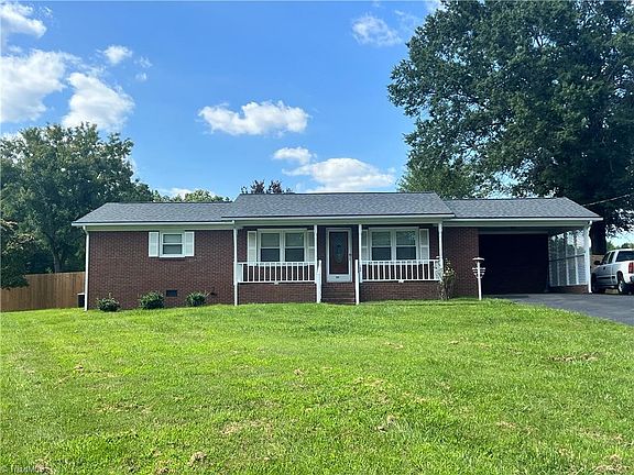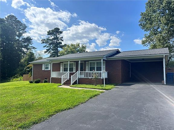 Discover this charming brick ranch home perfectly situated for easy access to Interstate 85, the 311 Bypass, local shops, and Creekside Park. This property offers both convenience & comfort. Enjoy 3 generously sized bedrooms and 2 bathrooms, providing ample room for family and guests. Relax on the covered front porch or the covered back porch and entertain on the deck. The new privacy-fenced backyard is ideal for keeping kids and pets safe and happy. A brick woodstove adds warmth and character to the living space, creating a cozy atmosphere for any season. The galley kitchen provides an efficient layout for meal preparation & cooking. A brand-new roof has been recently installed, ensuring durability & protection for years to come. Includes a 1-car carport as well as a detached 2-car carport for additional parking & storage. This lovely brick ranch is ready for you to call home. At $249,900, this well-maintained home offers great value in a sought-after area.