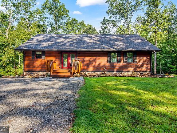 Seller is willing to give $13,500 credit if buyer makes offer before 10/30/2025. Welcome to 108 Red Hawk Trail - a meticulously maintained, custom-built one-owner mountain home nestled on 3 private acres in the heart of Ellijay. This charming 2 bed, 2 bath one-level residence blends serene mountain living with modern convenience, including HIGH-SPEED FIBER OPTIC INTERNET. Built just 7 years ago, the home features a 2018 roof, HVAC, hot water heater, a dual-fuel heating/air system, whole-house water filtration, and an electric monitor for efficient climate control. The kitchen offers warm wood cabinetry, stainless steel appliances, gas stove, Formica counters, and luxury vinyl plank flooring throughout. The open dining area flows into a living room with backup propane heat and space for a future fireplace. Recent upgrades include fresh porch staining, newly painted trim, and 36-inch doorways for potential wheelchair accessibility. A brand-new washer is conveniently located on the main level, and a nearby closet could easily convert into a bunk room. The spacious master suite boasts a huge walk-in closet (ideal for an office), ensuite bath, shower/tub combo, and linen closet. The guest bedroom and bath also include a shower/tub combo. The crawlspace is fully encapsulated by the owner, exceptionally clean, and dry with low humidity-offering potential for additional storage. Outdoors, you'll find stonework sourced from the property, new landscaping, a 330-gallon buried propane tank, seasonal mountain views, and a firepit area. A 12x16 outbuilding (only 4 years old) provides storage, workshop, or hobby space with a covered picnic area. Ample flat parking plus room for an additional garage or workshop. Vacation rentals are allowed, HOA dues are just $25/month, and residents enjoy a pavilion picnic area and playing field in the well-known Stover Creek community. HIGH-SPEED FIBER OPTIC INTERNET!
