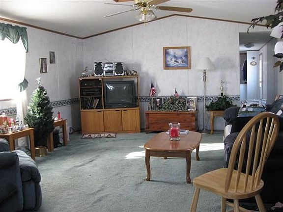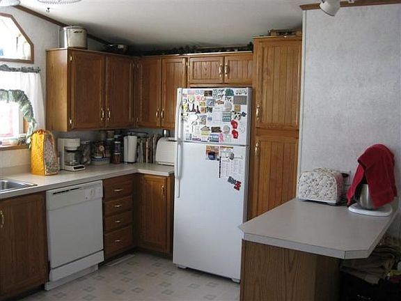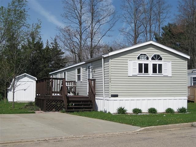 Well maintained 10 year old Wick Home.Roomy eat-in kitchen w/snack counter & pantry.Vaulted ceilings & above-cabinet windows for lots of sunshine.Spacious living room w/ceiling fan for comfort.Roomy master BR.Main-level laundry.Roomy bath w/skylight & garden tub.10X16 Deck & Shed w/ramp & wood floor (on beams).Newer roof (2007).2 parking spots.Mailbox close by.Lot Rent $175/month+taxes.Buyer must be approved by park manager.Buyer to obtain new lease from manager.