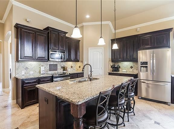 Beautiful 3 bed/3 full bath+office/4th bedroom. Pristine with upgrades & high-end finishes, the curb appeal will draw you into a spacious foyer & open floor plan, flooded w/natural light. Designer details thru-out include arches, niches, crown molding, granite, marble, gorgeous ceilings, cabinets, flooring & lights+fully wired for sound. Master contains a hidden AV panel for electronics, along w/luxurious features you want--ext. shower, His & Hers vanities, granite & more! Ext. deck-perfect for TX BBQ's!