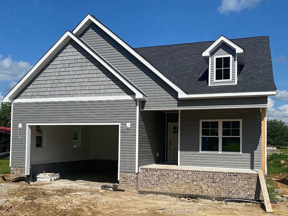 New Build - likely to be done by the end of August. This is a ONE story with many upgrades including an enlarged garage and some other changes to the floorplan. The living room and master bedroom have vaulted ceilings with hand carved beams. The deck/back patio is 10x22 feet and covered. There will be a tankless gas water heater. The flooring will be upgraded lvp and tile. Kitchen with quartz countertops. The home has an open floor plan. The master bath has a large custom shower. The neighborhood is within the old town of Burns TN.