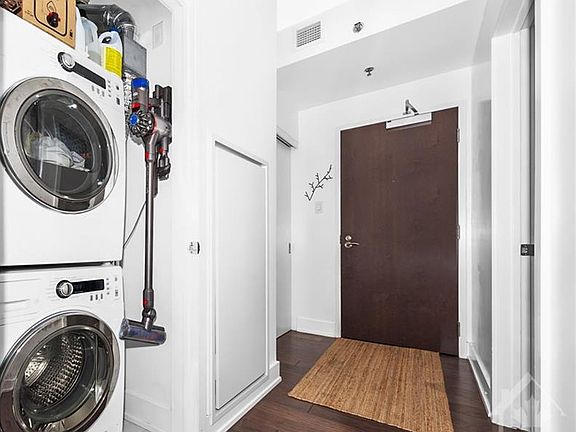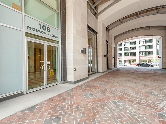 Enjoy Westboro living in this elegant condo unit located at 108 Richmond! This spacious 2 bed +den, 2 bath condo features tons of upgrades which set it apart from the other units! A luxurious kitchen with quartz counters, open entertainment space, spacious feel with 9 foot ceilings and floor to ceiling windows as well as hardwood & ceramic flooring throughout. The primary bedroom includes an expansive walk-in closet including an ensuite bath. Enjoy quiet time on the private balcony off the West end with peaceful views. The Building also offers wonderful amenities such as: a home theatre, a well-equipped gym and a MASSIVE roof top terrace. Live maintenance free and in style, come check it out! Condo fees cover building insurance, heat and water! PARKING AND STORAGE INCLUDED. Status certificate available upon request. Matterport 3D tour link available.