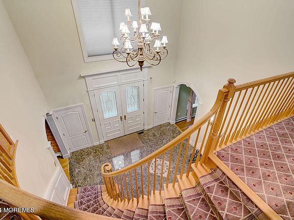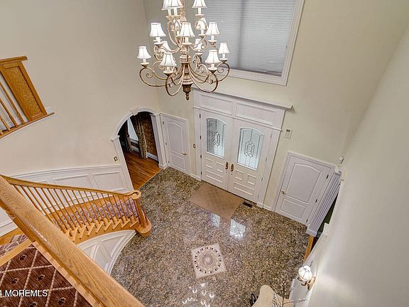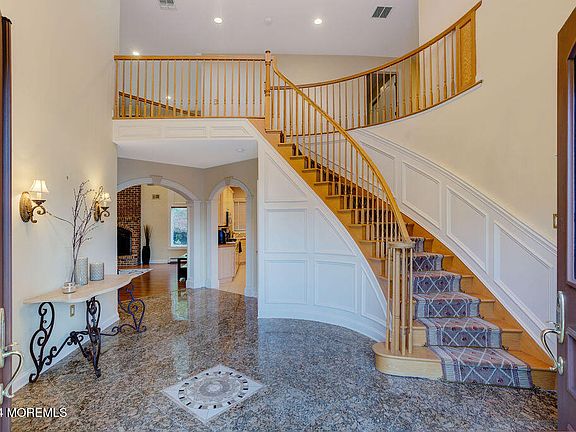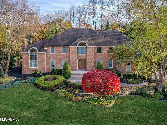 Welcome to an extraordinary home in the much desired Crine Woods in Morganville. Entertainers delight! Enter foyer w marble fl.tile inlay design, two story vaulted ceiling w 2 majestic staircases one leads to foyer other to kitchen.9 zone heat!An abundance of living space! Dine in the expansive EI kitchen w/various VIKING SS appl,a multitude of cabinetry & pantry. Expansive countertops w seated island! Gleaming HW flrs A grand DR , entertain family & friends! An oversized LR w/ cozy fplace ,plus a bonus fplace in office w french doors! A private In law suite on 1st fl.w full bath. 2nd fl. offers 4 huge bedrms! Your primary bedroom w en suite & a lg wardrobe closet! Front/rear pavers, brick front & sides.IG pool, FF basement 3 car garage.Won't last!ALL.ALL ROOM SIZE APPROX.