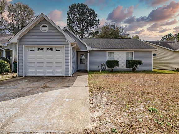 Welcome home to this well maintained home in Blue Pine Village! Easy commute to Eglin AFB and the great Niceville schools and only a short distance to Mid-Bay bridge and all Destin has to offer. Cook great meals on the gas stove and enjoy them in the connected dining room. Maybe even enjoy watching your favorite tv show in the living room which you can see from the table, but don't tell Mom! The full bath in the hall serves two bedrooms and the largest bedroom has a walk in closet and a private bath. Enclosed patio with screens and vinyl windows and a ceiling fan is perfect for entertaining or enjoy watching little ones play in the fenced in back yard. Storing yard equipment in the shed leaves room in the garage for your car and the laundry machines. Come see it before it's gone!