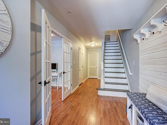 Completely updated Kentlands townhome with a 1 car garage. Ground level features a bedroom, hardwood floors and is roughed in for another bath. Main level has an open style floor plan, hardwood flooring, powder room, 3 sided gas fireplace, chair rail molding in dining room, crown molding throughout living room/dining area. Kitchen Features granite counters, stainless appliances, recessed lighting and is connected to the laundry room. Upper level has hardwoods throughout, vaulted ceilings in the bedrooms, large master bedroom with his and her walk-in closets, and a fully renovated bathroom that has custom tile and a granite sink counter top. Home also features a large front patio that is perfect for grilling and entertaining. Sought after location that is close to schools, shopping, restaurants, parks, and major commuter routes. Enjoy all of the amenities that the Kentlands has to offer.