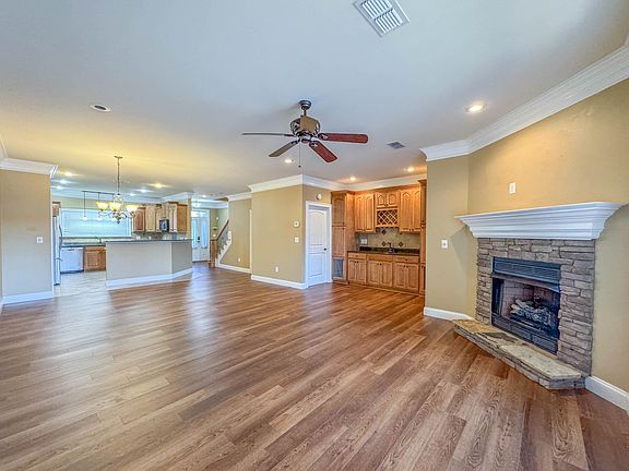 Lake Sinclair living in beautiful townhome! This open floor plan has huge views of the lake. This home has three bedrooms and two and half bathrooms. Open floor plan and great kitchen with granite counter tops and open to the living area. Unit comes with one assigned boat slip. The community pool and HOA fees are currently 300 a month.