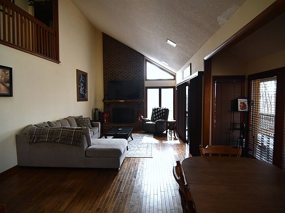 Truly a unique opportunity to own a riverside get-a-way close to shopping and other amenities less then 10 minutes away! A wooded, secluded lot with large boulders and a huge deck/ screen porch for an awesome view! "Cyprus" wood siding gives it the rustic feel of a mountain cabin in the woods. Vaulted ceiling, Dry sink in laundry, with downstairs master. Recent improvements inc: New roof, well pump and pressure tank, Upstairs toilet 2022. Custom storage rack added to kitchen cabinets. Dual water filters. Lots of Built in shelves in garage. Kitchen doorway was widened for better access. New black out shades on tons of windows facing the river. Electric dog door. Multiple security cameras inside and outside with control DVR and monitor which all convey. Just A little more TLC on the inside is all this home needs. One of the smallest homes in a very private neighborhood! Many neighboring homes are in the $500k+ price range!