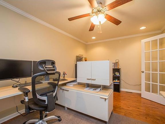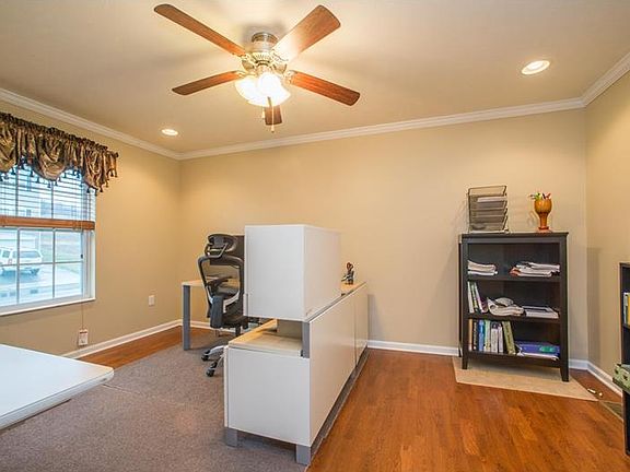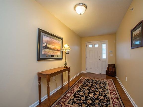 Former model home for the community, this 3-bedroom, 3.5-bath end-unit townhome features the St. Gabriel floorplan and is loaded with upgrades. and offers stone, brick, and vinyl construction with dentil moldings and shutters. Two-car garage and guest parking in drive. Wide, welcoming foyer. Den right off the main hallway could be used as fourth bedroom if so desired. Open main level living and dining area is easy to customize. Gas fireplace in living room. Dining room walks out to rear deck. Equipped kitchen with Corian counters, clean steel appliances, upgraded cabinets, and large pantry. Large main level master bedroom suite with deluxe bath. First floor powder room and equipped laundry. Two spacious bedrooms and another full bath upstairs. Must-see lower level gameroom adds fantastic living space and offers an equipped kitchenette with breakfast bar, a full bath, storage space galore, and an unfinished room that could be converted into a bedroom for an in-law suite. Views of wooded land behind the property from the rear deck. Other amenities include a security system, and a built-in interior sprinkler system.