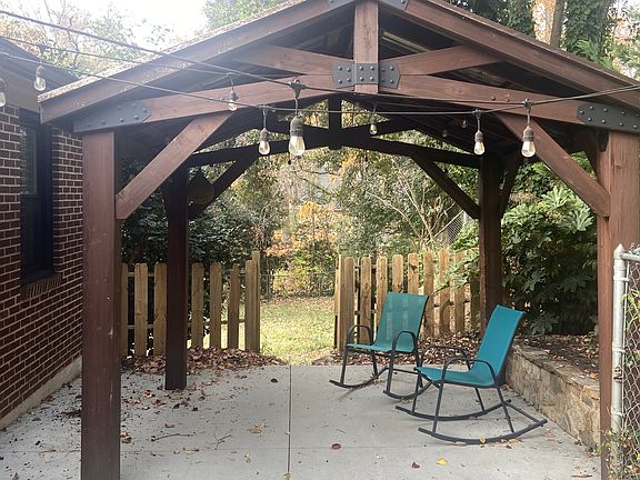 Wonderful front porchRenovated brick homeHardwood floors throughoutNew appliances in kitchenButcher block islandNew penny tile backsplashSide covered patio
