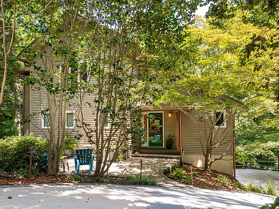Robustly constructed and impeccably maintained, this energy-efficient tree house nestled on a half an acre in a quiet cul-de-sac is walking distance to UNC. The inviting front patio leads you into the open concept living area with soaring ceilings backing to a beautiful hardwood landscape. Glass doors across the back of the house access the stunning wraparound porch for outdoor dining and gathering. A private library shares a double-sided, gas fireplace with the living room. The main floor also boasts a primary suite with walk-in shower and air-jetted tub, a powder room, and a laundry room. Enjoy the second floor loft for reading or office. Solar panels added in 2023 generate over 10 megawatt hours of power annually and stores in the Powerwall. The over-sized 2-car garage has loads of storage. and opens to the man cave of your dreams, including full daylight basement and workshop, cedar closet and a 'dumb waiter' to the first floor. The interior garage door allows easy access for moving large projects. Take a look! The dramatic magic happens when you open the front door!